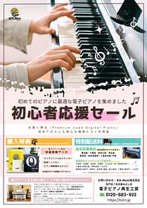 2026 初心者応援セールを開催中です。 B.B.Musicでは、これからピアノを始めたい方に向けて、国産メーカー中古電子ピアノ限定の初心者応援セールを実施しています。 ヤマハ・ローランド・カワイ・カシオ・コルグなど、安 […]
